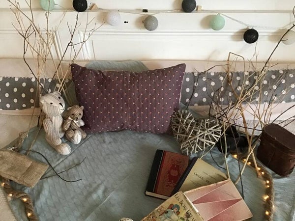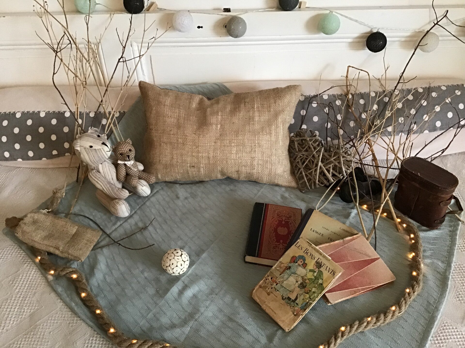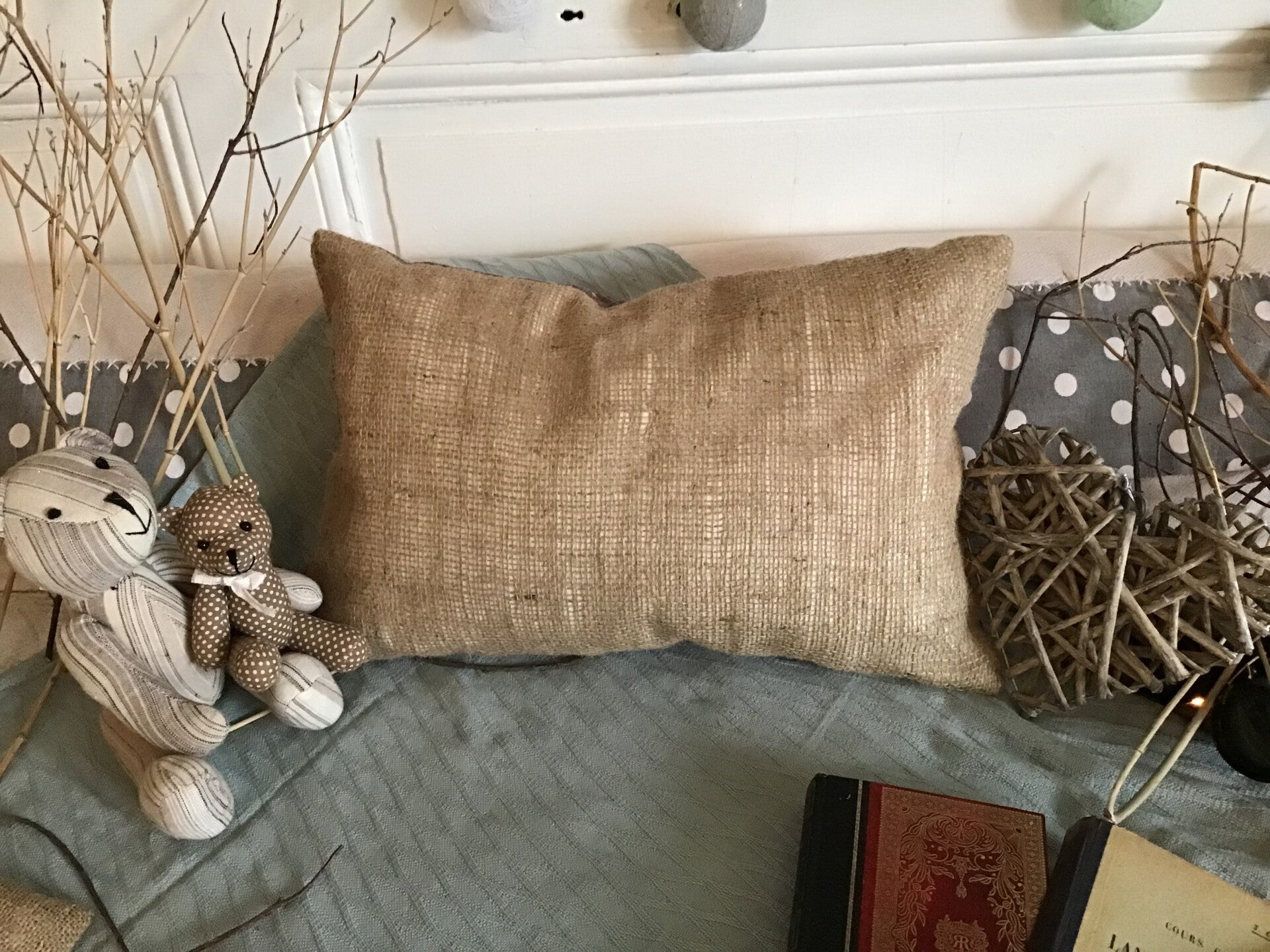 Coussins toile de jute ,tissu mauve et velours crème,tissu mauve