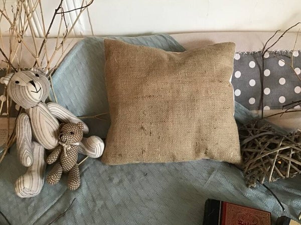 Coussin de décoration toile de jute et tissu style anglais