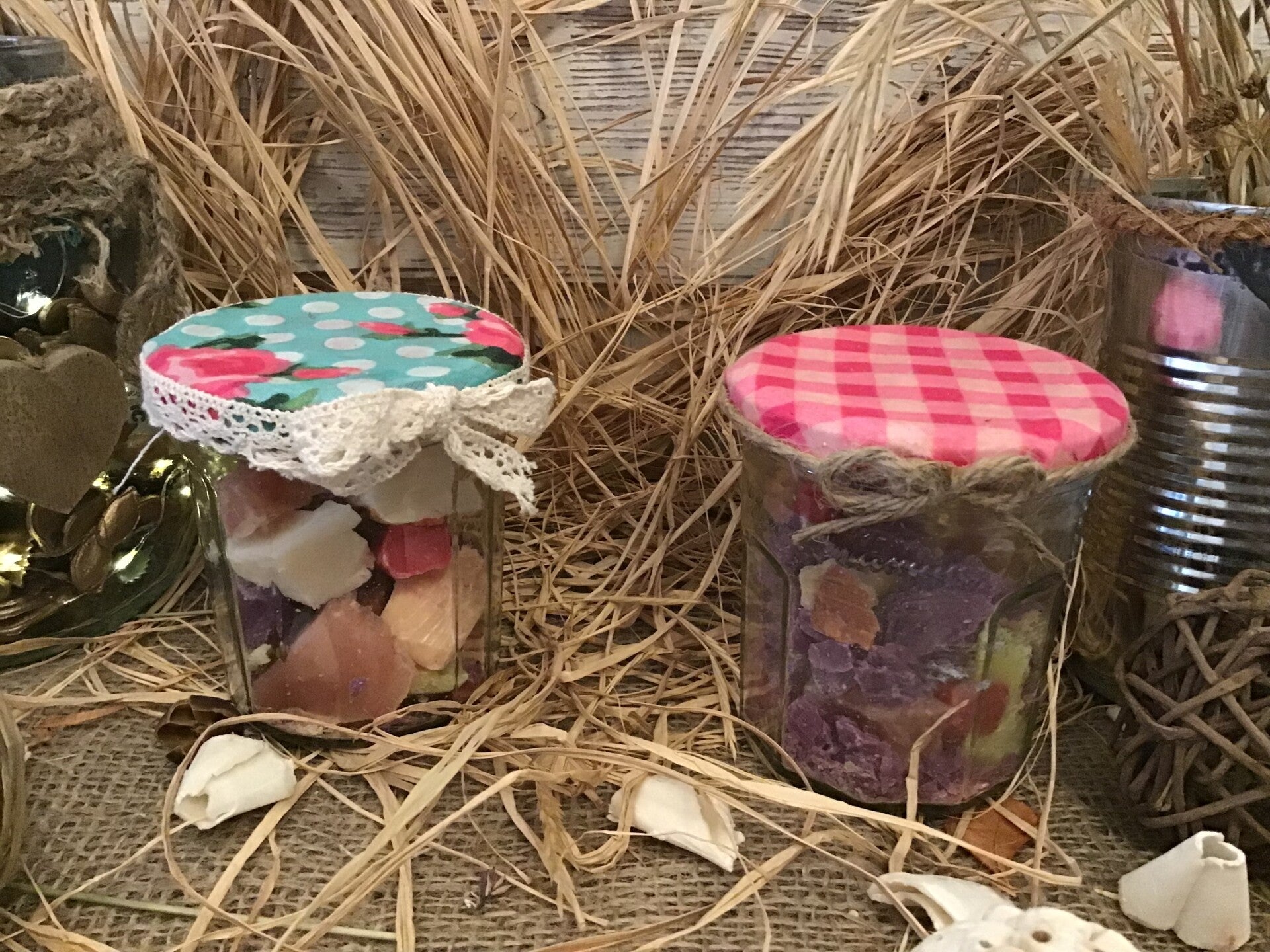 Pots décoratifs avec savons où pots avec verveine du jardin pour vos infusions