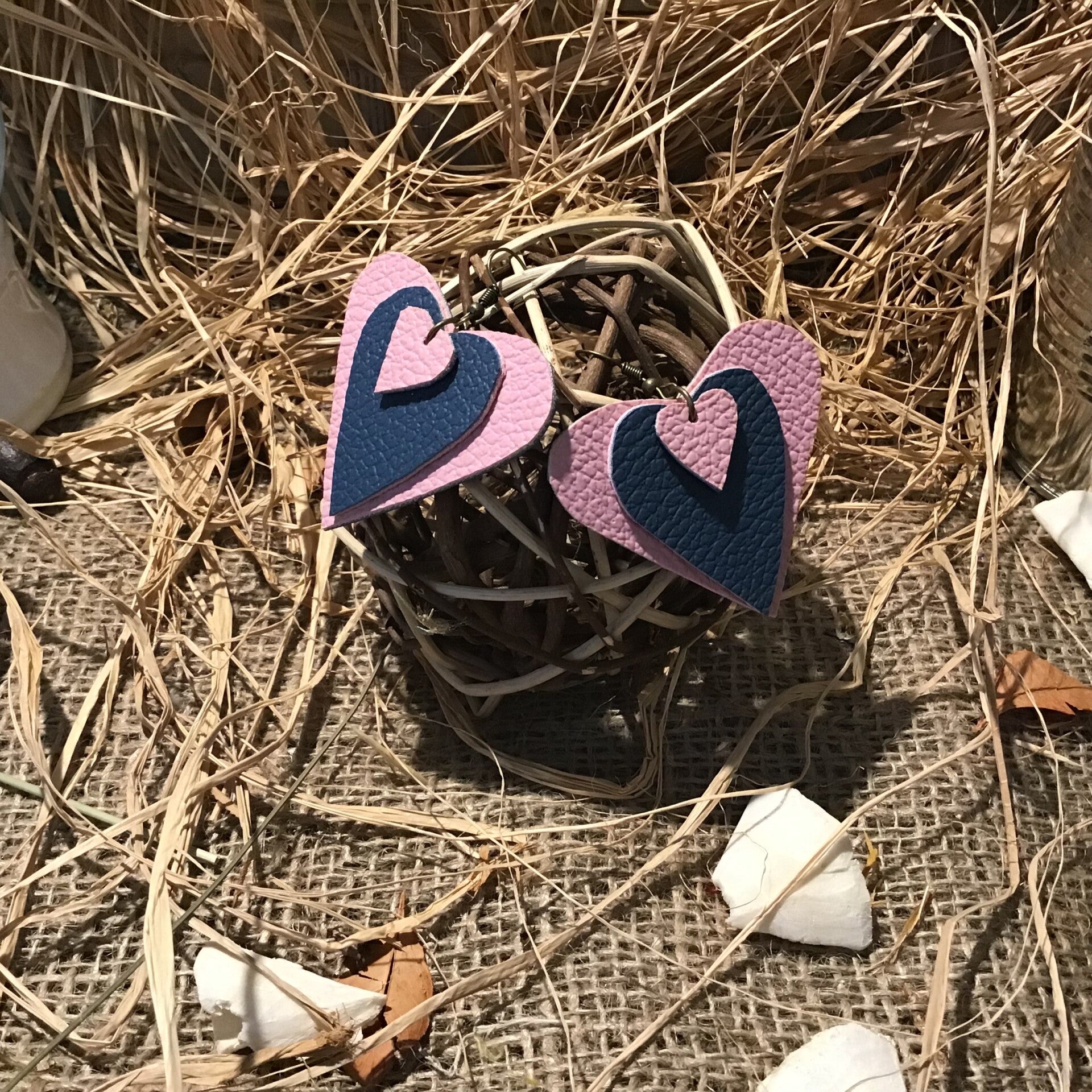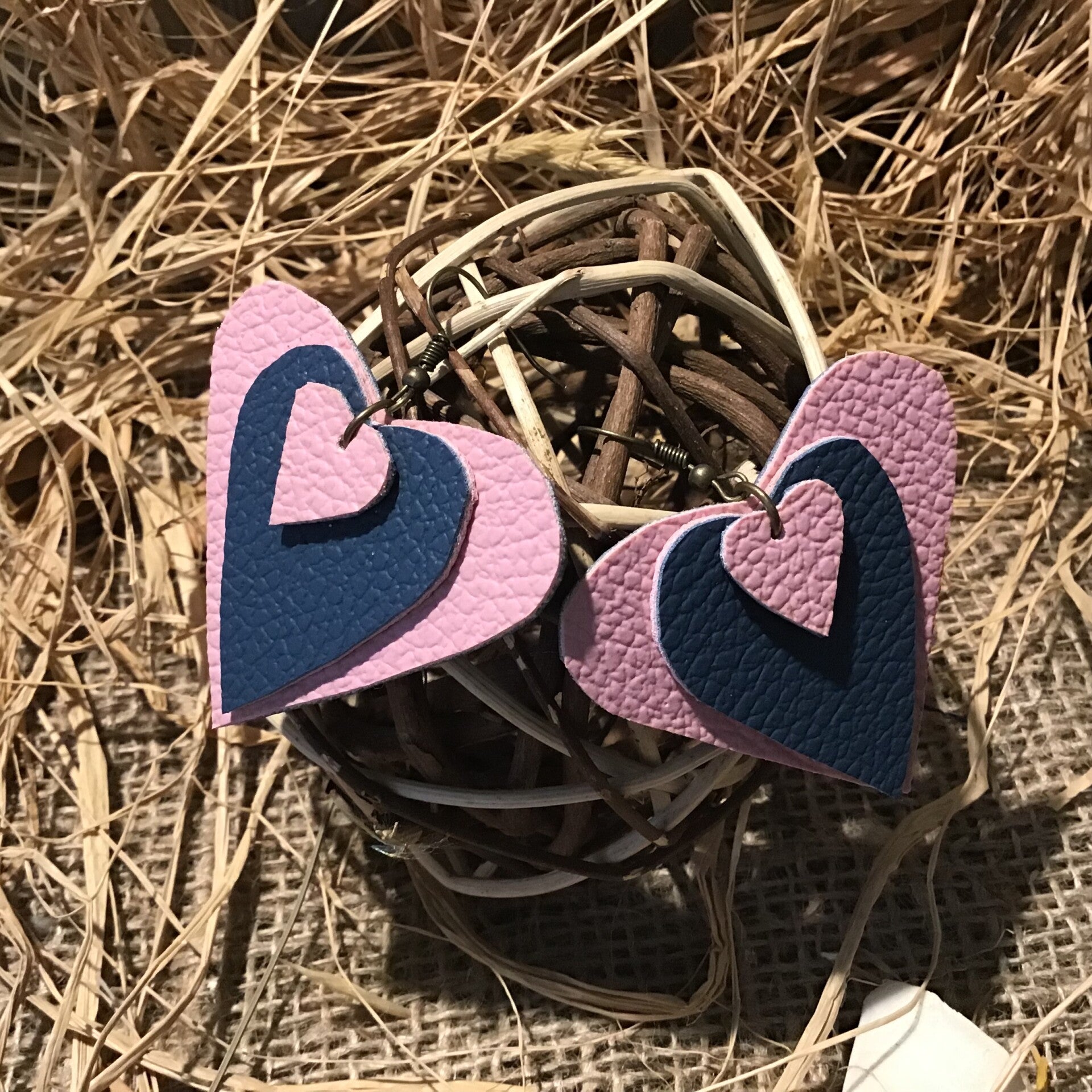 Boucle d’oreille cœur surperposé rose et bleu