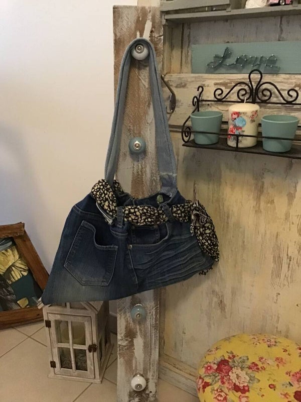 Sac en jean,ceinture foulard fleuri