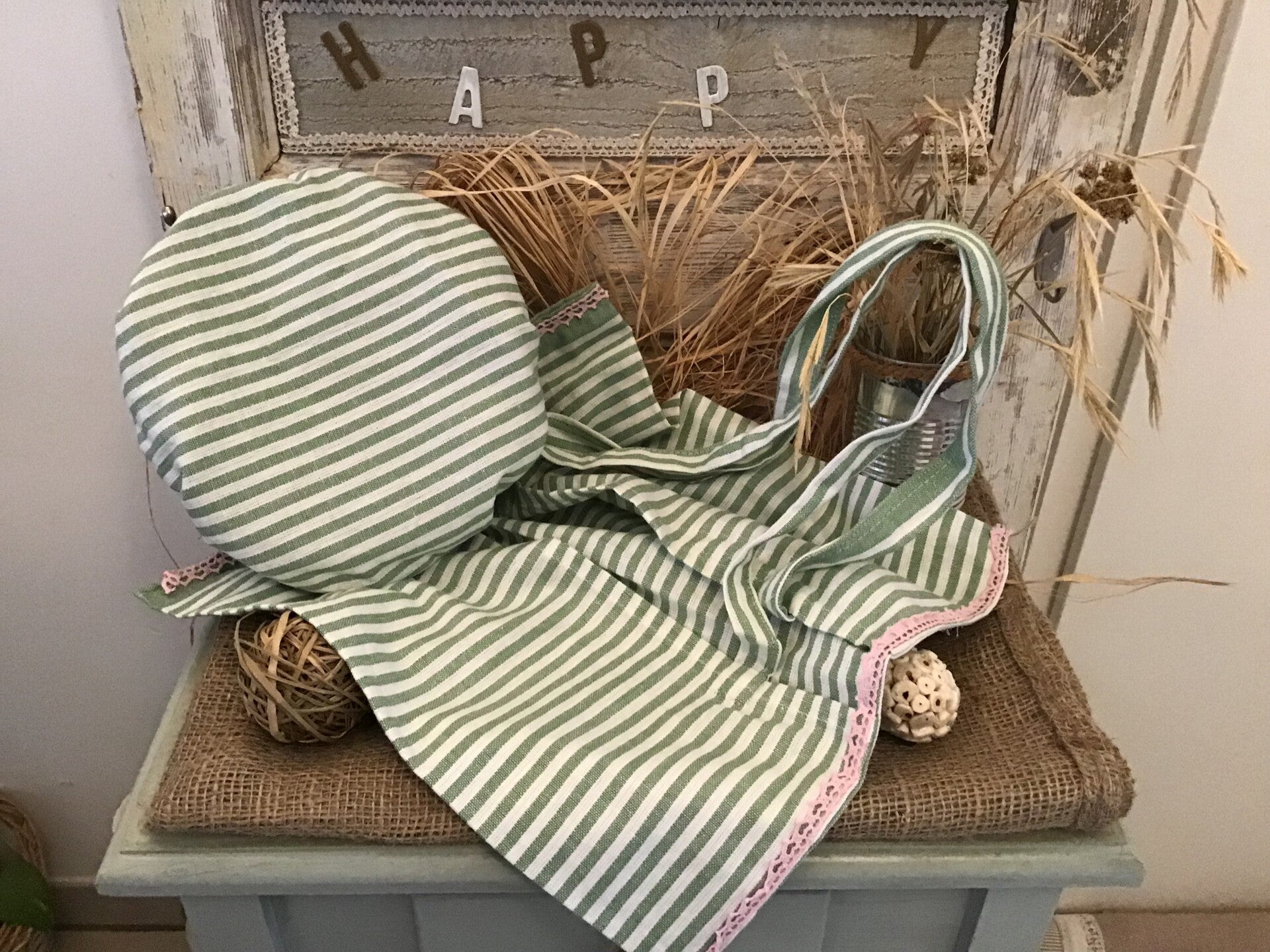 Sac à tarte rayé vert et blanc et sa charlotte réversible