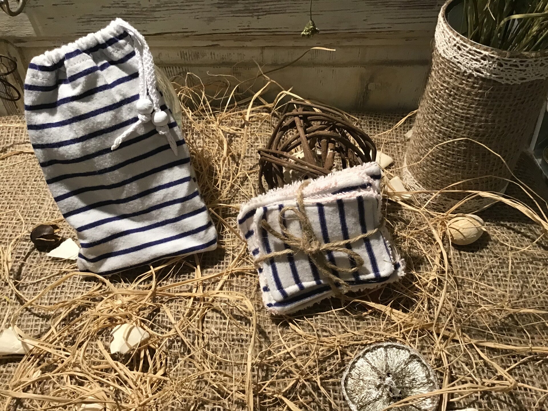 Lingettes démaquillantes lavables et sa pochette rayé et rose