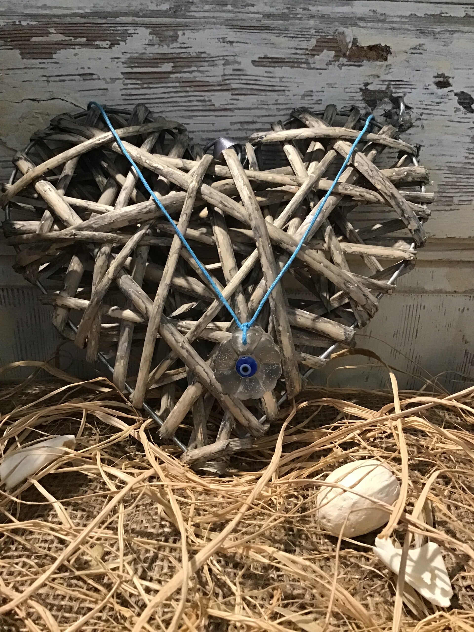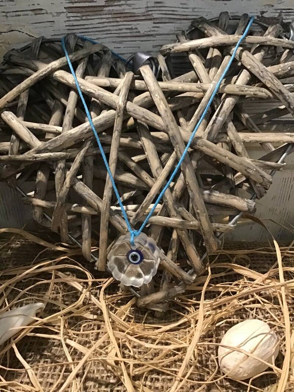 Collier médaillon fleur en résine et œil protection